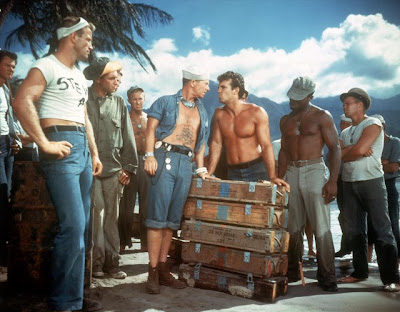 However, South Pacific-- which was based on 36-year-old Quaker textbook editor, prep school teacher and would-be World War II lieutenant James A. Michener’s nineteen vignettes he put together in the semi-autobiographical Pulitzer Prize winning Tales of the South Pacific is much more than a “song and dance picture.”
